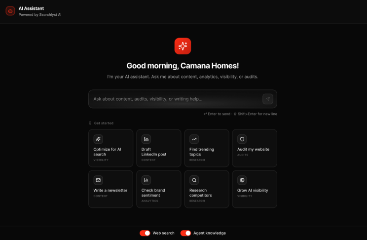 Ask about content strategies, audit your website, check brand sentiment, or draft articles — your AI assistant handles it all with deep platform knowledge.